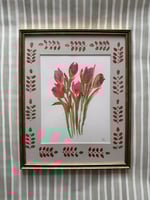 Watercolour tulips with decorative picture mat, in a glass fronted frame.